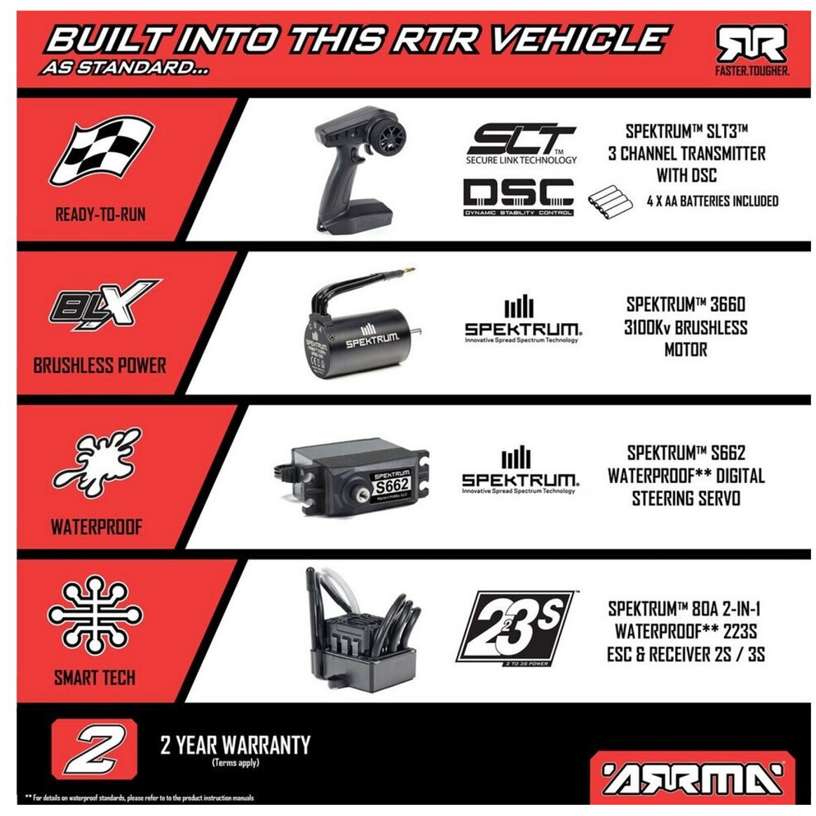 Im Lieferumfang enthalten sind ein Ladegerät, Akku und eine Fernsteuerung, sodass du sofort starten kannst. Der auffällige rote Farbton macht den ARRMA GRANITE 223S nicht nur zu einem leistungsstarken Fahrzeug, sondern auch zu einem echten Blickfang.