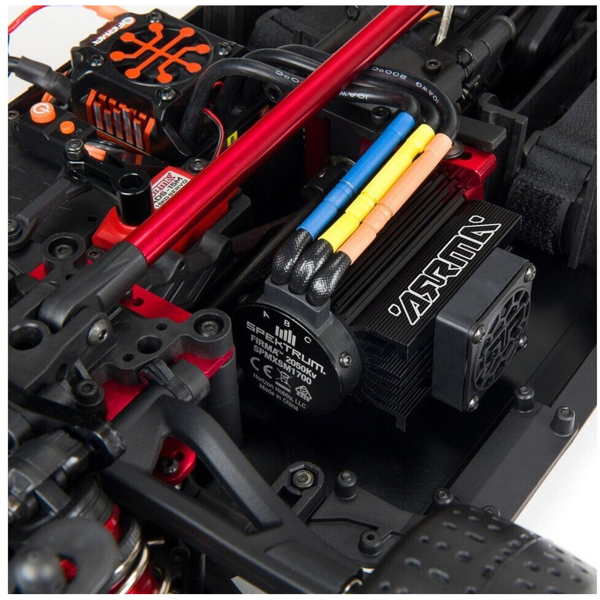 Das ARRMA Infraction ist mit einem hochmodernen Brushless-Motor ausgestattet, der eine atemberaubende Höchstgeschwindigkeit von bis zu 128 km/h erreicht. Der Allradantrieb (4WD) sorgt dafür, dass Sie jede Strecke mit Leichtigkeit bewältigen können. Mit einem Radstand von 406 mm und einer Gesamtlänge von 695 mm legt dieses Fahrzeug nicht nur Wert auf Geschwindigkeit, sondern auch auf Stabilität und Kontrolle.