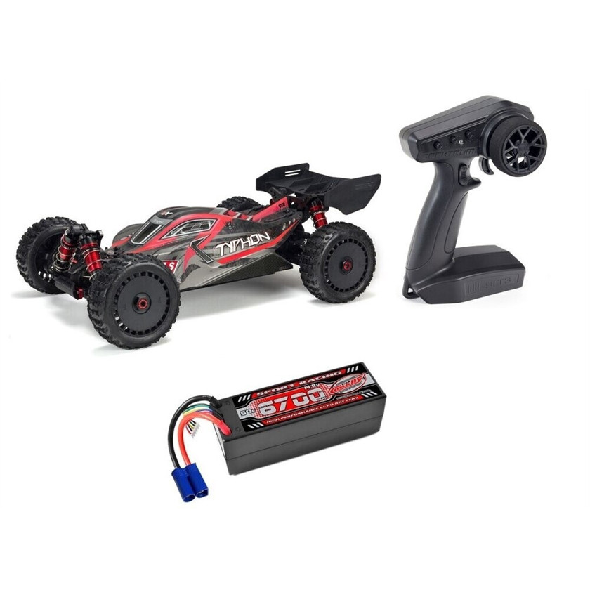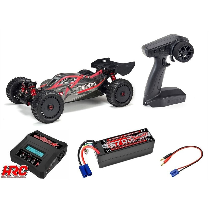 Im Lieferumfang enthalten sind ein Ladegerät und das RC-Modell selbst, sodass Sie alles haben, was Sie brauchen, um sofort zu starten. Erleben Sie die Faszination des RC-Fahrens mit dem ARRMA TYPHON 6S, Maßstab 1:8 und machen Sie jeden Tag zu einem Abenteuer.