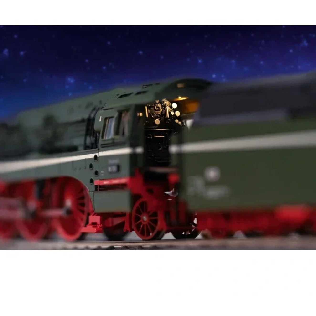Die Dampflokomotive mit Schlepptender wird digital gesteuert und bietet Ihnen ein modernes Fahrerlebnis auf Ihrer Modelllandschaft. Für besonders authentische Einsätze wurde diese Lok auch mit Rauchausstattung versehen, die das Erlebnis noch echter wirken lässt. Die Lok trägt das Emblem der Deutschen Reichsbahn (DR) aus der Epoche VI und ist perfekt geeignet für alle, die die Zeit von 2007 bis heute nachstellen möchten.
