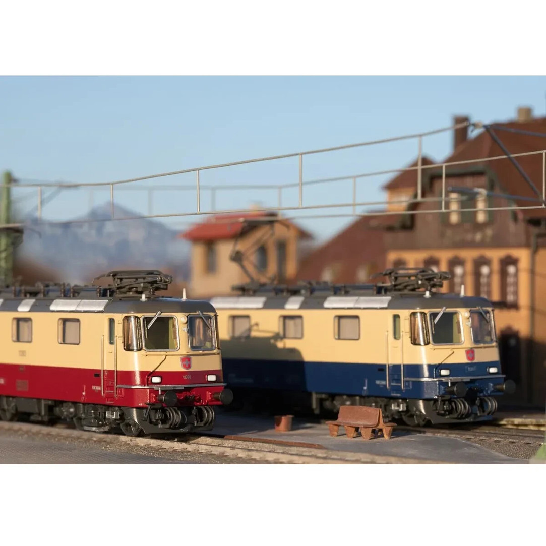 Entdecken Sie die Trix Modellbahnen H0 Elektrolok-Doppelpackung Re 421 | IRSI | Ep. VI (25100), die perfekte Ergänzung für Ihre Modellbahnanlage. Diese detailgetreue Elektrolokomotive im Maßstab 1:87 bringt authentischen Fahrtspaß auf Ihre Gleise.
